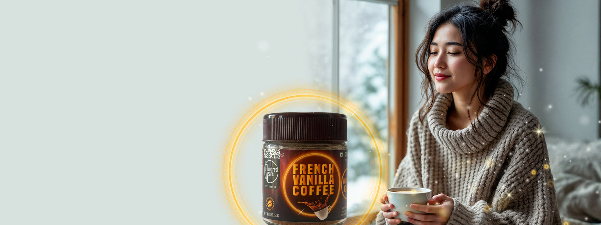 HundredYears French Vanilla Premium Instant Coffee | 100% Arabica | 100 Gms | Ultra-Premium Lifestyle Coffee for the Trendy Generation